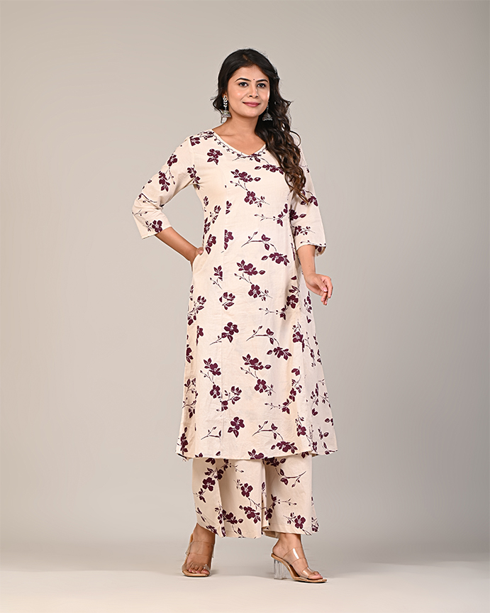 Elevate your style with this exquisite printed modal silk kurti, paired perfectly with solid color pants for a chic and balanced look. The kurti, crafted from luxurious modal silk, features a captivating print that adds vibrancy and sophistication to your wardrobe. The solid color pants complement the kurti beautifully, offering a sleek and timeless contrast for a refined and graceful outfit